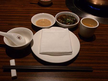 這個胡麻醬有點花生味道的佐料很適合拿來沾肉片吃~