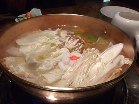 上前菜之前,服務生就會先把菜盤裡的菜先放進鍋裡煮~~