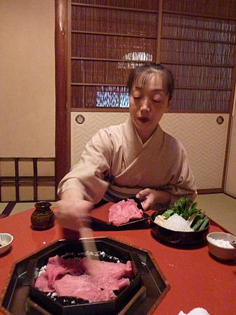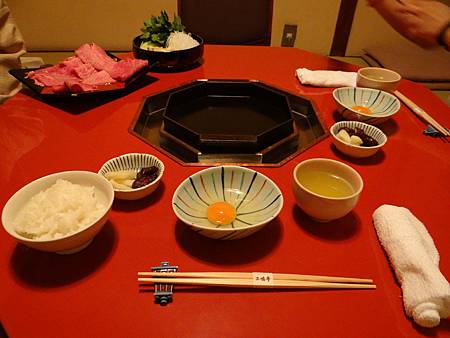 女將先煮幾片牛肉,一邊告訴我們可以打蛋汁用來沾牛肉